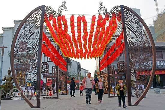 連日來,宿城喜迎新春的氛圍漸濃,處處洋溢著歡樂祥和的氣息。圖為宿馬園區一處商業場所里張燈結彩,游客們興致勃勃地品美食,賞美景。記者 王明輝 攝