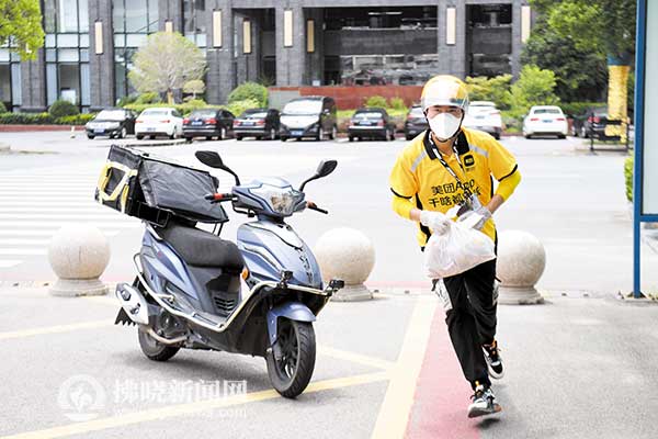 7月5日,譚章夢為顧客配送訂單。今年27歲的譚章夢是安徽省宿州市泗縣的一名外賣小哥。泗縣本輪新冠肺炎疫情發(fā)生后,譚章夢主動向公司申請加入物資保供組,忙碌在疫情防控一線,為一家大型保供商超提供配送服務(wù),保障米面蔬菜等生活必需物資的配送。接單、取貨、送貨,譚章夢穿梭于大街小巷,一天工作約12個小時。“泗縣是我的家鄉(xiāng),我想為家鄉(xiāng)作點貢獻(xiàn),為物資保供出份力。”譚章夢說。 新華社 發(fā)