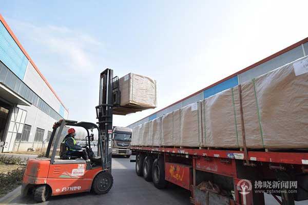 3月3日,埇橋區順河鎮板材產業園綠洲森工有限公司內,工人將高密度板材裝車銷售給客商。在相關部門優化營商環境、助企紓困等系列政策的扶持下,該公司中高密度板材產銷兩旺,日生產量達1000多方,產品在國內外市場供不應求。 特約攝影 祝家剛