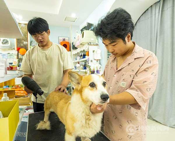 8月11日,市民在宿城西昌南路一萌寵店內購買貓糧,并給寵物狗梳毛。近年來,我市積極培育寵物繁育交易、食品用品加工、醫療美容和寄養服務等全產業鏈條,不斷推動寵物經濟發展壯大。 記者 蘇洋 攝