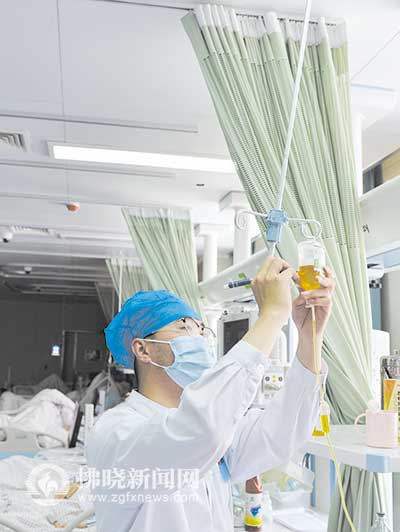 接班之后,顧陳峰立即進入工作狀態。每天早上來到ICU第一件事就是要為患者擦身、拍背,保證患者身體干凈舒適,看到一位患者胡須長了,顧陳峰拿來一把剃須刀輕輕地為他清理,顧陳峰告訴記者:“以前患者修剪頭發、胡須等都是由家屬來做,現在由于疫情管控家屬探視,這些事情也由我們接手了。患者本來就被病痛折磨,我們最起碼要讓他們的身體清爽一些。”