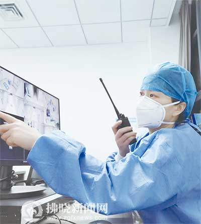 隔離病區工作任務重、風險大。她每天除了做好病區各項管理工作,處理各種突發情況外,還會深入病房,為患者采血、霧化、吸氧、靜脈輸液等。為了防止交叉感染,她總是反復檢查要進入病區醫護人員穿戴的防護裝備。同時,她還隨機調取公共視頻,查看各班人員在脫防護用品時存在的問題,及時糾正,提醒“戰友”們做好自身防護、消毒隔離、手部衛生等,確保護理工作安全有序開展。