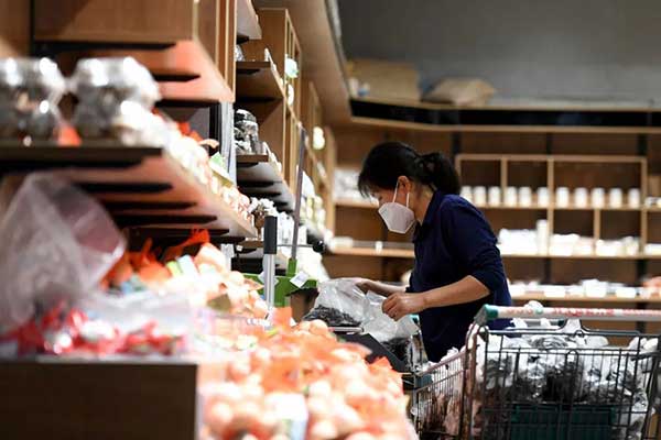 7月4日,在安徽泗縣佳美超市,工作人員在分裝商品。新華社記者 黃博涵 攝