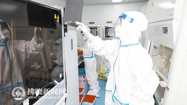 脫去“戰袍”的“大白”們在互相加油鼓勁