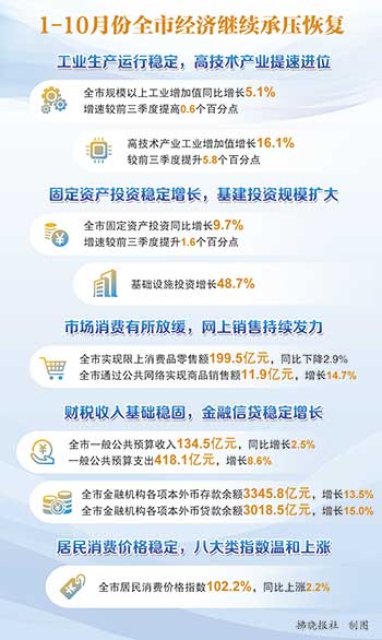 拂曉新聞網--拂曉報訊 記者昨日從市統計局獲悉,1-10月份,我市高效統籌疫情防控和經濟社會發展,加力落實穩經濟一攬子政策措施,著力擴大有效需求,全市經濟社會大局穩定。