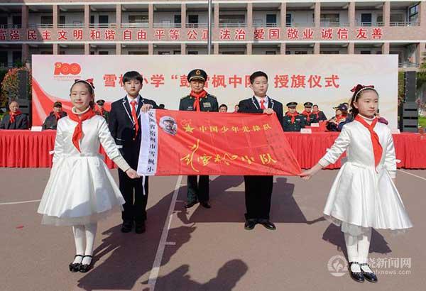 彭小楓上將在雪楓小學為“彭雪楓中隊”授旗。