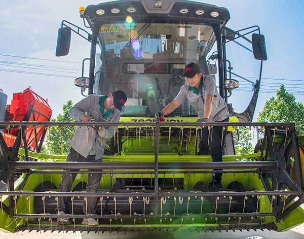 碭山縣農(nóng)機(jī)發(fā)展服務(wù)中心組織技術(shù)人員檢修、調(diào)試農(nóng)業(yè)機(jī)械,為即將到來的“三夏”做準(zhǔn)備。 特約攝影 崔猛