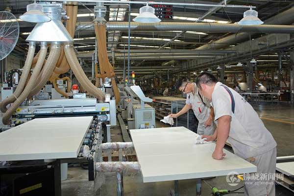 TATA木門生產(chǎn)線上一派繁忙景象。記者 王明輝 攝