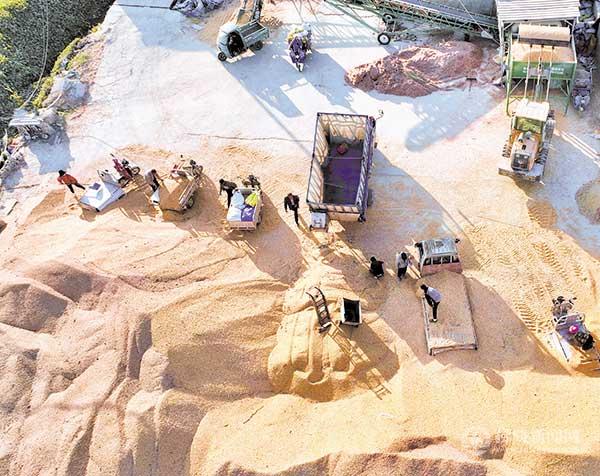 蕭縣永堌鎮(zhèn)前進村一家糧食收購點在收購玉米。特約攝影 楊坤
