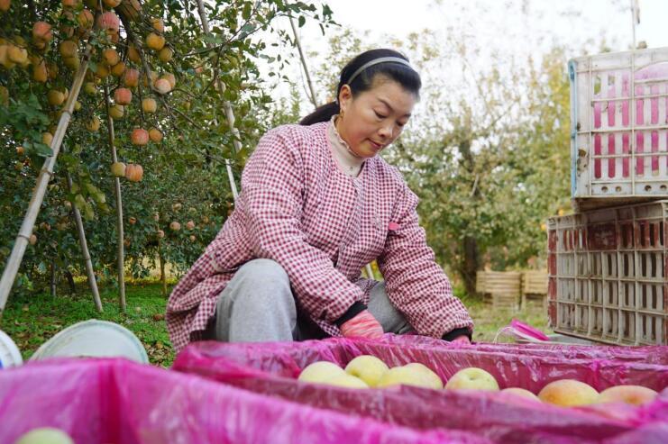 “今年蘋果長得不錯,色澤飽滿、含糖量高,價格也不錯。”農場負責人楊前進正忙著為山東臨沂上門收購的果商采摘蘋果,豐收的喜悅盡收眼底。