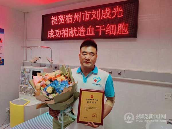 拂曉新聞網--拂曉報訊 5月6日,宿州志愿者劉成光在合肥捐出199毫升造血干細胞混懸液,為一名白血病患者輸送了“生命的種子”。劉成光成為安徽省第615例、宿州市第49例成功捐獻造血干細胞的志愿者,也是目前我市年齡最大的造血干細胞捐獻者。