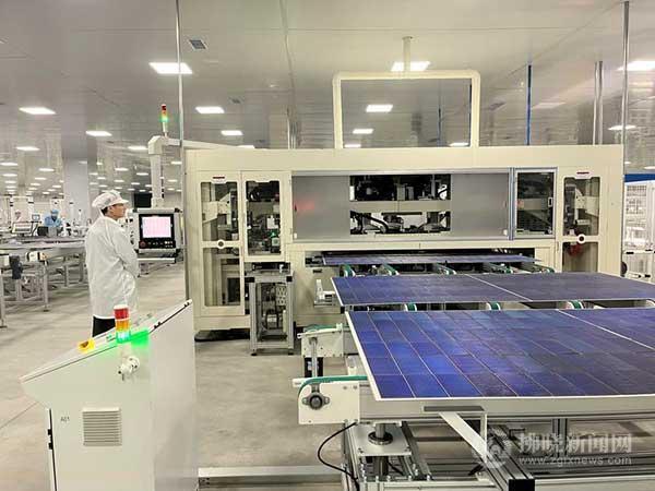在泉為安徽泗縣基地生產(chǎn)車間,記者看到,3GW高效異質(zhì)結(jié)光伏組件生產(chǎn)線上一片忙碌景象。“它的主要功能是把異質(zhì)結(jié)的電池片通過層壓、串焊、組裝工藝,形成一個(gè)完整的太陽能電池板……”泉為科技董事兼副總裁兼產(chǎn)品總監(jiān)李森介紹。