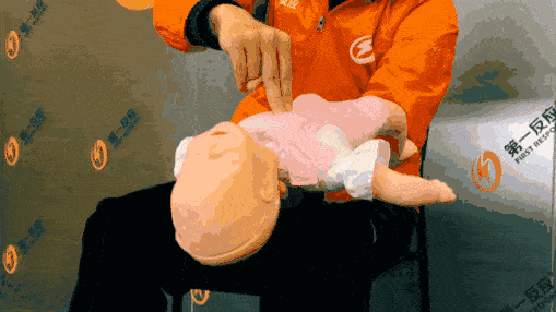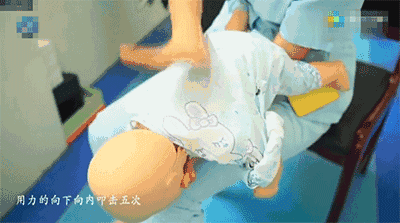 壓胸:把寶寶翻正,在胸部正中靠下部位,用食指和中指按壓5次。