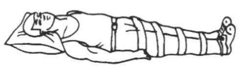 如果沒(méi)有上述材料的話,可以將上肢固定在軀干上,下肢固定在對(duì)側(cè)健肢上。