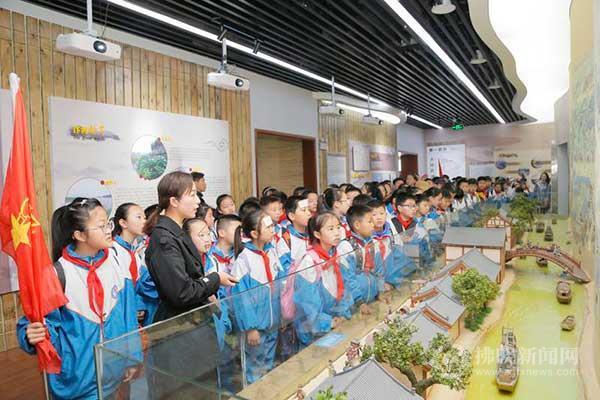 一群小學生在宿州市汴河博物館參觀研學。