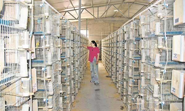 養(yǎng)殖戶榮梅英察看種鳥的生長情況。