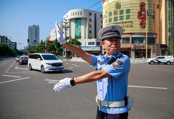 宿城汴河中路與淮海南路交叉口交警在執(zhí)勤。