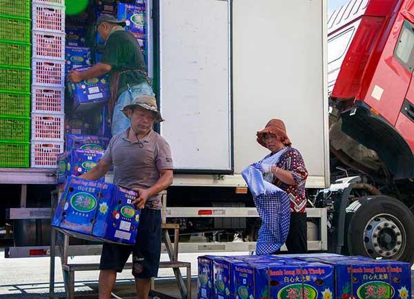 宿州百大農(nóng)產(chǎn)品批發(fā)市場(chǎng)里搬運(yùn)工在卸貨。