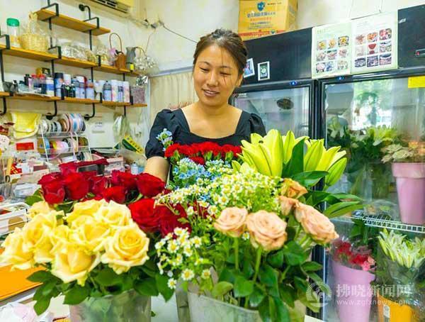 8月6日,宿城一花店內老板正在整理花卉,提前備戰“七夕”。記者 蘇洋 攝