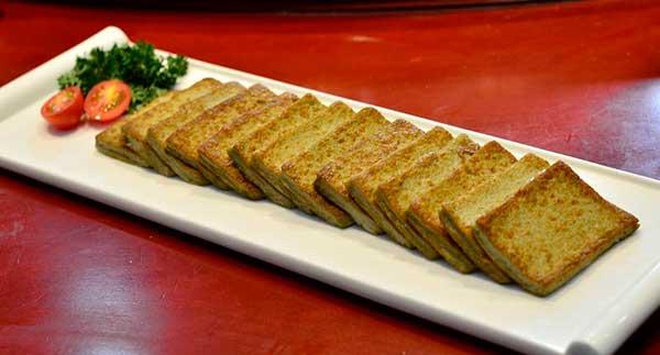 黑豆腐不是黑色的豆腐,而是黑豆制作的豆腐。相傳乾隆皇帝出京南巡時(shí),宿州進(jìn)獻(xiàn)的土特產(chǎn)里就有黑豆腐制成的豆腐干,乾隆皇帝品嘗后稱贊不已。靈璧廚師在前人傳承的基礎(chǔ)上,用靈璧本地特產(chǎn)的青仁黑豆經(jīng)過(guò)浸泡磨制,加雞蛋蒸煮成型,制作過(guò)程中不添加任何防腐劑、添加劑。