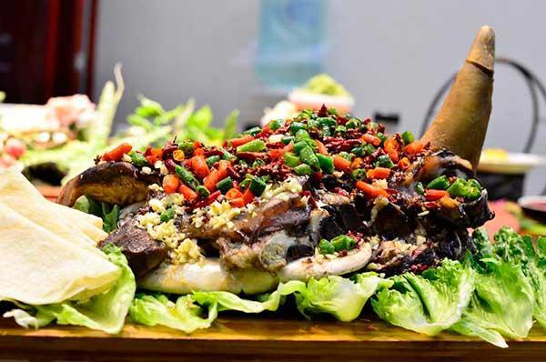 與“霸王別姬”一樣,這也是道硬菜,相當(dāng)?shù)谩坝病薄U麄€(gè)鹵制好的牛頭需要兩個(gè)人抬到餐桌上,第一次來(lái)吃的食客一定會(huì)被這偌大的牛頭震撼到,特別是那對(duì)牛角倔強(qiáng)地上揚(yáng),寓意著席上賓客蒸蒸日上、牛氣沖天,絕對(duì)對(duì)得起它霸氣的名字。