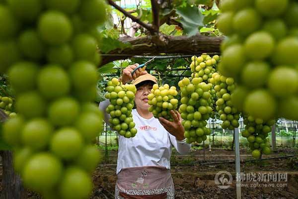 玄廟鎮(zhèn)古黃新村果農(nóng)采摘陽(yáng)光玫瑰葡萄。