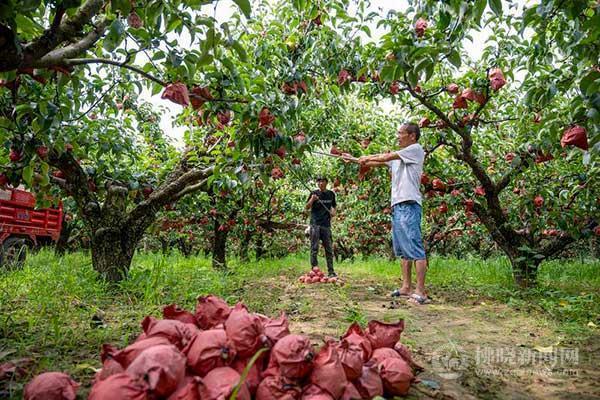 程莊鎮(zhèn)果農(nóng)采摘秋月梨,準(zhǔn)備上市。