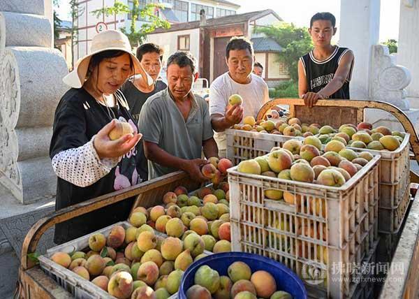 浙江客商(左一)在碭城鎮(zhèn)西南門村收購(gòu)鮮桃。