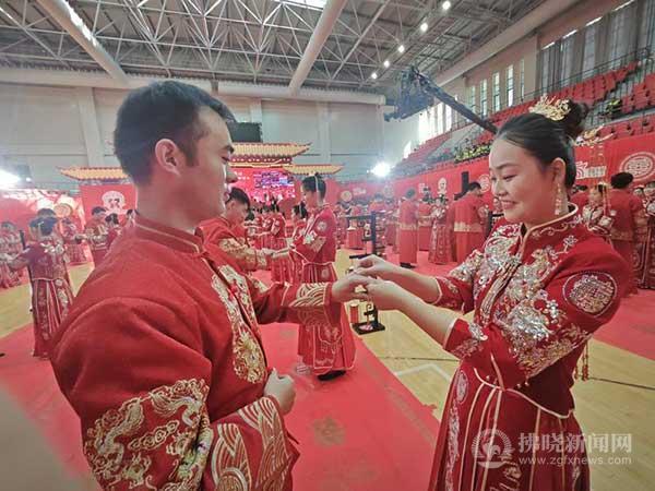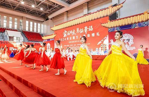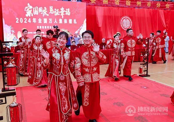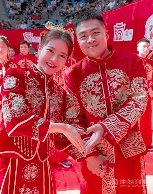 9月22日,在宿州學院體育館,我市100對新人參加全國萬人集體婚禮,喜結連理,共同許下“相守一生、白頭偕老”的幸福承諾。