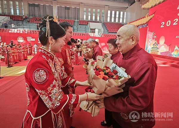 新人向六對結婚50年的“金婚夫婦”獻花。