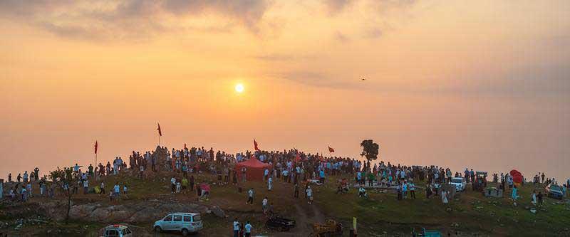 循著互聯網的印記,一群年輕人慕名前往朱山團建,聚會玩到半夜感覺意猶未盡,興奮之余便效仿夜登泰山看日出而登頂朱山。在山頂看到日出的那一刻,他們發現竟然毫不遜色于泰山,于是把視頻、照片發到網上,點擊率迅速拉升。