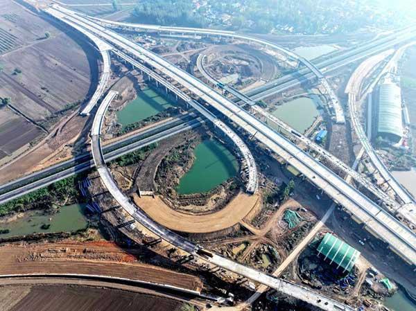 宿固高速上跨宿靈泗快速通道施工現(xiàn)場(chǎng)。