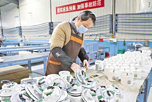 2月5日,節(jié)后第一個(gè)工作日,位于埇橋區(qū)汴河鎮(zhèn)的安徽恒泰電氣科技股份有限公司的員工開足馬力趕訂單。 特約攝影 張成伍