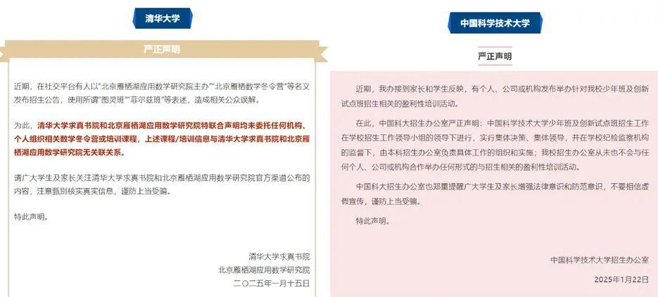 詳情:近期,部分社會機構及個人公然以高校名義,發布一系列不實信息,包括收費開展志愿填報指導、舉辦盈利性培訓,甚至宣稱能夠提供“特殊錄取名額”。此類虛假信息不僅誤導考生及家長,更嚴重擾亂了高校招生的正常秩序。對此,清華大學、中國科學技術大學、華東師范大學、蘭州大學等多所高校通過官方渠道發表聲明,提醒廣大考生及家長務必保持高度警惕,增強防范意識,切勿輕信這些虛假宣傳,謹防陷入詐騙陷阱,切實維護自身的合法權益。(來源:“微言教育”微信公眾號)