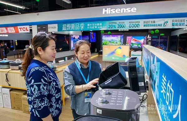 4月7日,在宿城東昌路一超市內,導購員為顧客推介商品,介紹“以舊換新”相關補貼政策。隨著我市“以舊換新”政策深入推進,多家大型超市聯合家電、家居品牌,推出“以舊換新”促銷活動,吸引眾多市民前來選購。據了解,一季度,全市共發放消費券1050萬元,核銷980萬元,涵蓋汽車、家電、家裝廚衛、數碼產品、電動自行車等多領域。記者 蔣幫煜 攝