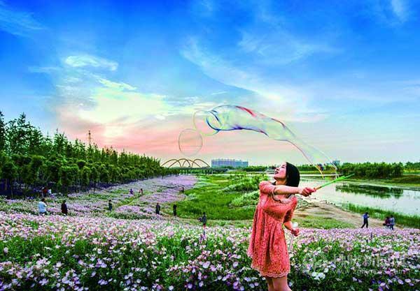 “亂花漸欲迷人眼”——三角洲公園的鮮花粉白交錯,令人目眩;“春來江水綠如藍”——晨光中的新汴河,兩岸垂柳將碧波染成“綠如藍”的綢緞。“櫻杏桃梨次第開”——西山花海層層疊疊的花浪,又應了“亦道春風為我來”的詩意。