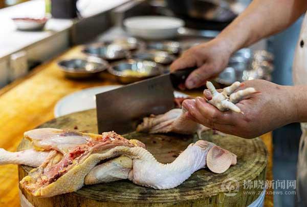 在宿州老梅飯店,大廚張崇將剛宰殺好的本地黃雞往案板上一丟,菜刀“咣咣”幾下,雞塊整整齊齊排好隊,嘴里念叨:“這雞不是養(yǎng)在籠子里的速成雞,而是當?shù)厣B(yǎng)的‘跑地雞’,整天在田間地頭溜達,吃蟲子、啄野草,肌肉緊實,燉出來才香。”