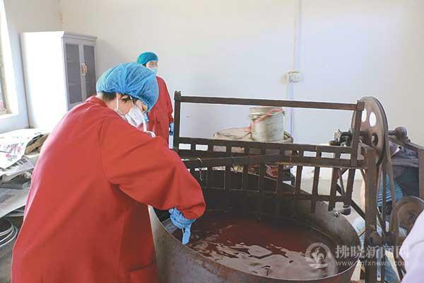 工人們用純手工古法制作香油(俗稱貢香油)。