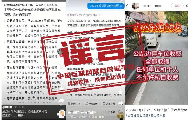 謠 言四川成都6月1日起所有公路邊停車位免費(fèi)?