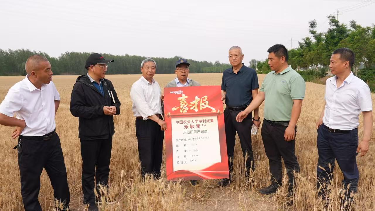 種糧大戶何慶飛種植的2000多畝小麥,在中國農大專家幫助下,開展多項新技術對比試驗進行種植。專家隨機抽取小麥樣本、實收實測、去除水分雜質,經過一下午忙碌,結果顯示這塊采用植物免疫啟動蛋白“禾敏素”種植的小麥田,畝穗數、穗粒數、千粒重等指標遠超其他田塊,表現格外搶眼。