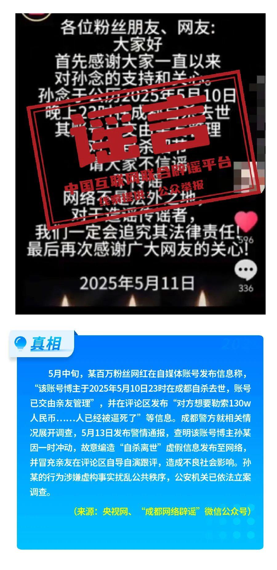 打擊網絡謠言 共建清朗家園 中國互聯網聯合辟謠平臺2025年5月辟謠榜