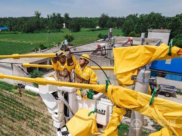 近日持續高溫,國網埇橋區供電公司帶電作業班成員對35千伏夏劉寨變10千伏徐王105線10千伏合山支線076號桿開展安裝金具、固定導線等作業,進一步保障高溫天氣期間電網安全穩定。拂曉報通訊員 扈瑜 攝