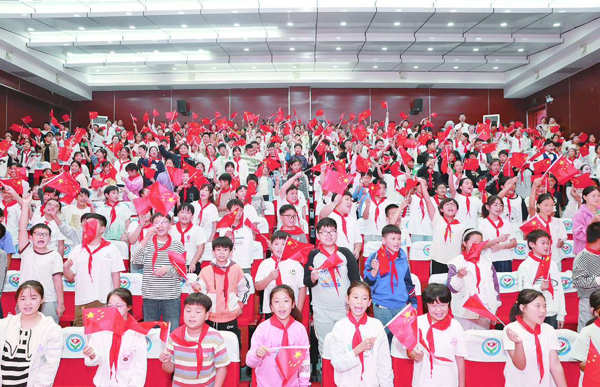 活動現場,42名文藝工作者與千余名師生共同演繹了一場情感充沛的音樂思政課。《我們是共產主義接班人》拉開序幕,《今天是你的生日》《歌唱祖國》等經典曲目依次唱響。臺上弦樂婉轉、號角激昂,臺下師生揮動國旗、齊聲合唱。五年級學生岳思晨說:“歌聲讓書本里的歷史‘活’了起來,更懂得了今天的幸福生活來之不易。”