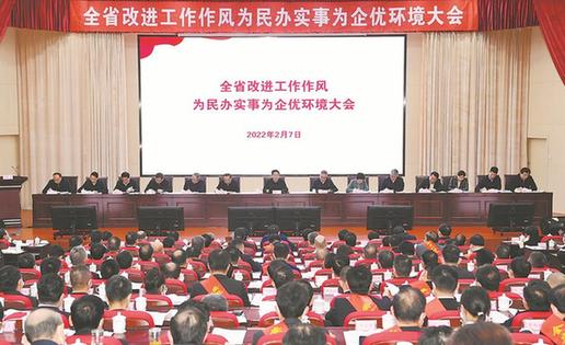 會上,省委常委、常務副省長劉惠宣讀《中共安徽省委辦公廳安徽省人民政府辦公廳關于表揚安徽省民營企業稅收貢獻50強、國有控股企業稅收貢獻10強、外資企業稅收貢獻10強、農業產業化龍頭企業20強、“專精特新”企業50強、現代服務業企業30強、個體工商戶10佳的通報》,解讀《中共安徽省委安徽省人民政府關于創建一流營商環境的意見》《中共安徽省委安徽省人民政府關于促進市場主體提質擴量增效的意見》主要精神;省委常委、政法委書記張韻聲宣讀《中共安徽省委辦公廳安徽省人民政府辦公廳關于表揚2021年度全省信訪工作優秀單位的通報》;省領導為受到通報表揚的企業、個體工商戶和信訪工作優秀單位代表頒獎;播放我省信訪工作和營商環境問題“大起底”專項行動發現的營商環境問題專題片;省委常委、紀委書記、監委主任劉海泉解讀《中共安徽省委關于進一步改進作風的若干舉措》主要精神;部分省轄市委書記和省直部門主要負責同志作表態發言。