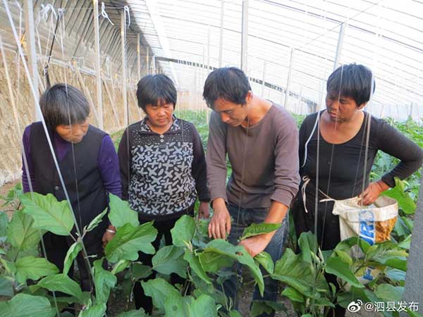 深秋的黃昏,在泗縣長溝鎮(zhèn)邵莊村,脫下軍裝已經(jīng)9年的村民張成在大棚里正忙活。見有人過來,趕忙放下手頭活,趁天黑前帶我們轉(zhuǎn)了幾個棚子。“今年茄子的長勢尤其好,看這個頭兒,春節(jié)前可以上市;茄子已經(jīng)開始授粉,元旦前采摘沒問題……”聽著張成的介紹,活脫脫一位蔬菜專家。但9年前,對于大棚蔬菜種植,他是一臉茫然,甚至是一無所知。