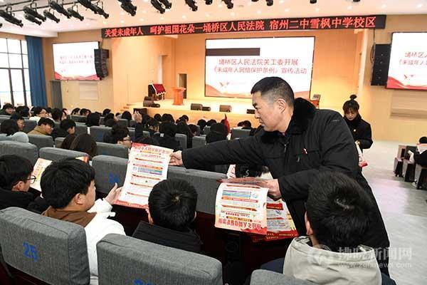 12月28日上午,埇橋區法院法官在宿州二中雪楓中學校區宣講《未成年人網絡保護條例》。《未成年人網絡保護條例》將于2024年1月1日起施行,埇橋區法院組織法官深入轄區中小學校園進行大力宣講,進一步增強未成年人使用網絡、文明上網的安全意識、法治意識。阮傳寶 攝
