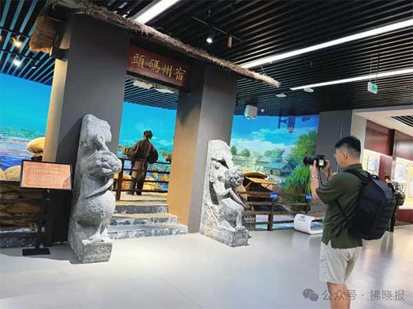 采風(fēng)團(tuán)記者拍攝館內(nèi)“宿州汴河宋代碼頭場景”