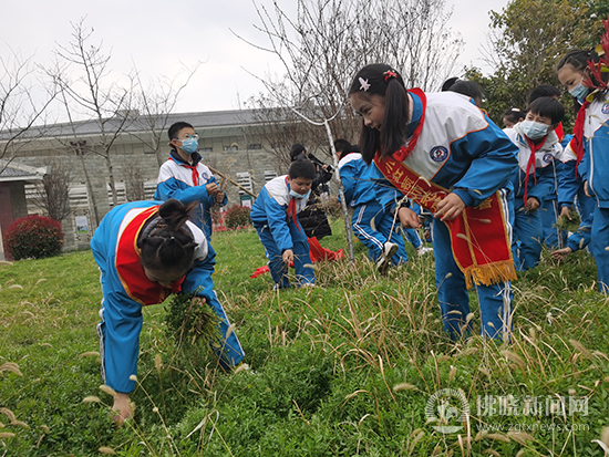 宿州一小通濟(jì)校區(qū)的少先隊(duì)員在清理草坪。