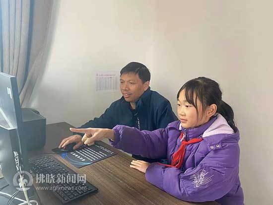 泗縣大莊中心校學(xué)生許巧玉正在和父親一起收看“云都課堂”。 魏霜 攝