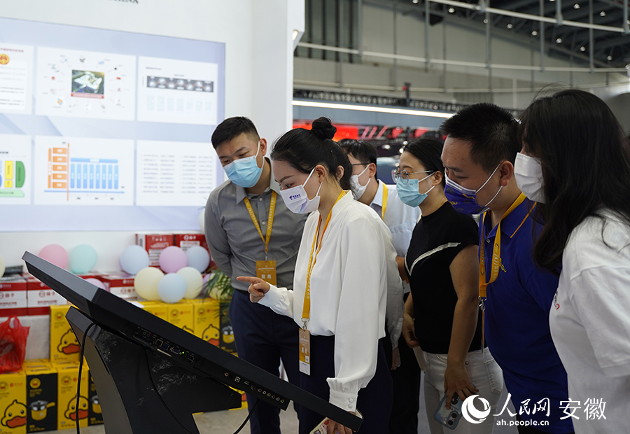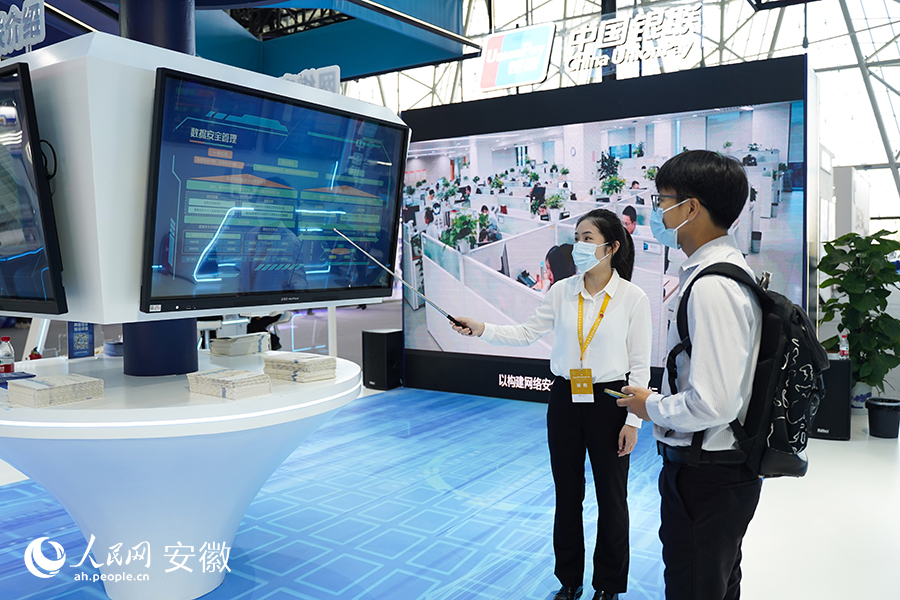 工作人員正在向參觀者介紹網絡安全產品。人民網 李希蒙攝